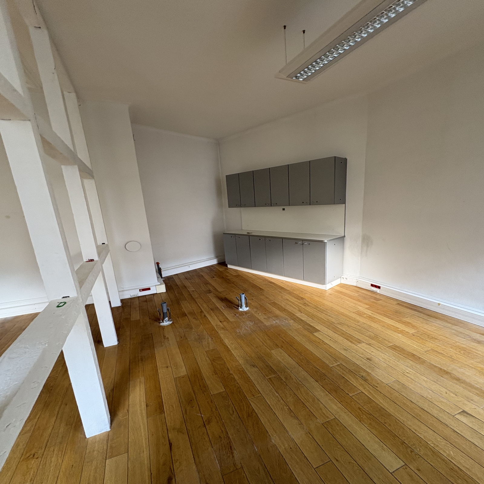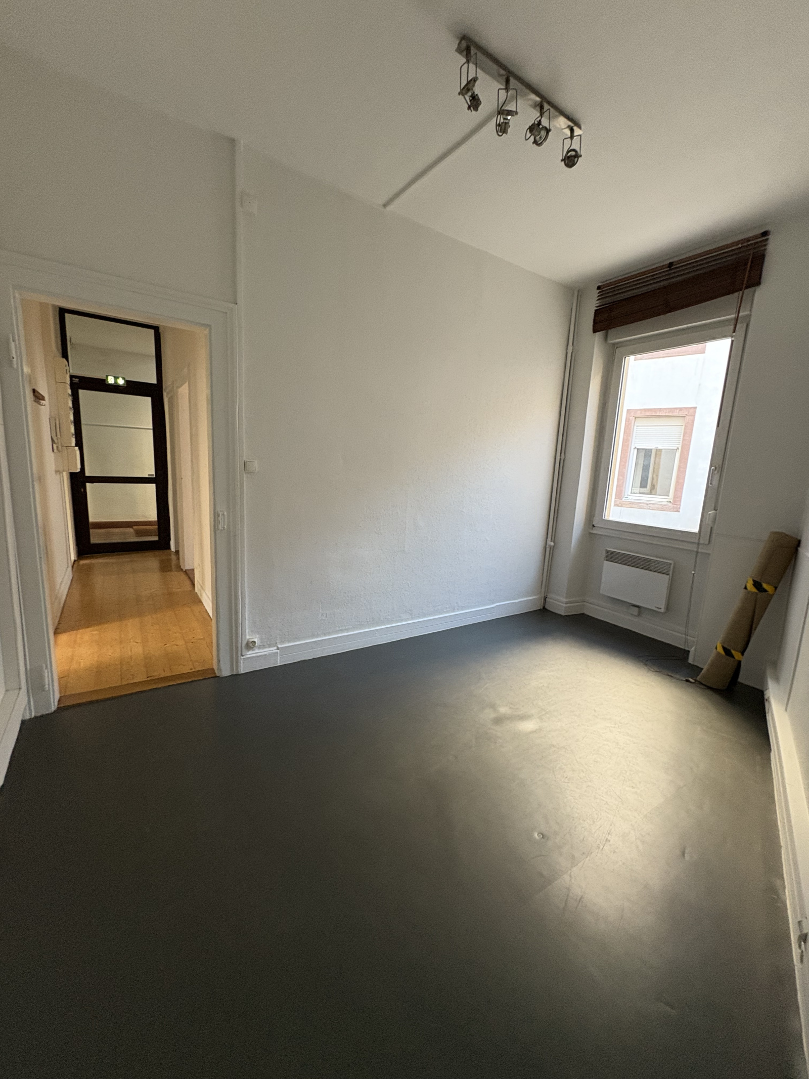 Entre la Place des halles et la gare, Boulevard WILSON, dans cour, à louer locaux professionnels de 90m². RDC surélevé dans cour. 3 pièces, wc avec lavabo. Parquet. Chauffage individuel électrique. Libre. Place de parking en sous-sol possible pour 50 € de plus. Très bon état.