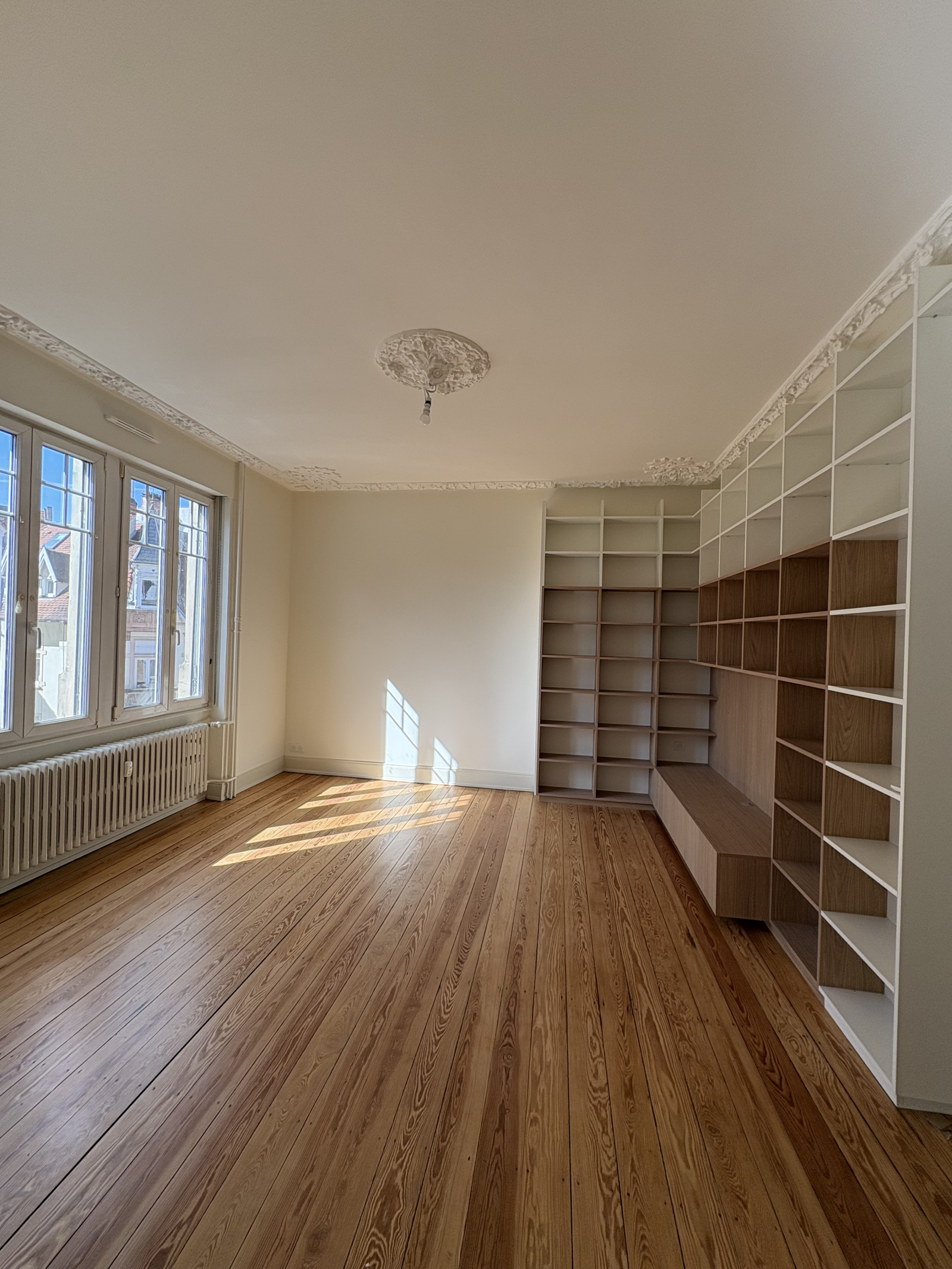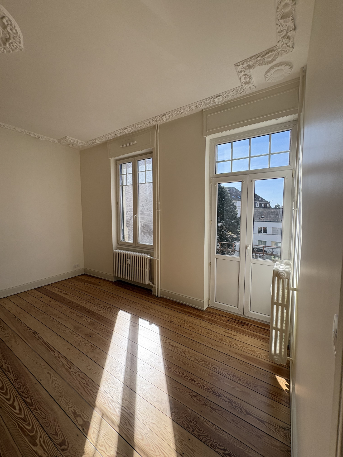 Proche Lycée Kléber, France 3, Arte, et institutions européennes, rue Charles GRAD, à louer très beau 3 pièces, entièrement rénové. Il comprend : entrée, beau séjour avec meubles intégrés, salle à manger avec balcon, cuisine entièrement équipée avec accès terrasse sur cour, chambre donnant sur la salle de douche avec emplacement machine à laver, toilettes séparés. Disponible de suite. 3ème étage sans ascenseur. Chauffage et eau collectifs gaz. Cave. Climatisation. Parquet, moulures. Belles prestations. Un appartement par palier. Fibre internet.