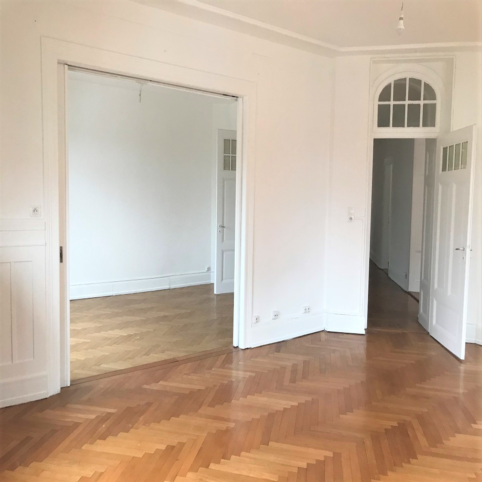 Dans bel immeuble de caractère, lumineux 5 PIECES en angle avec parquet chevron, bow window, moulures au plafond, cuisine équipée, salle de bains, salle d'eau.