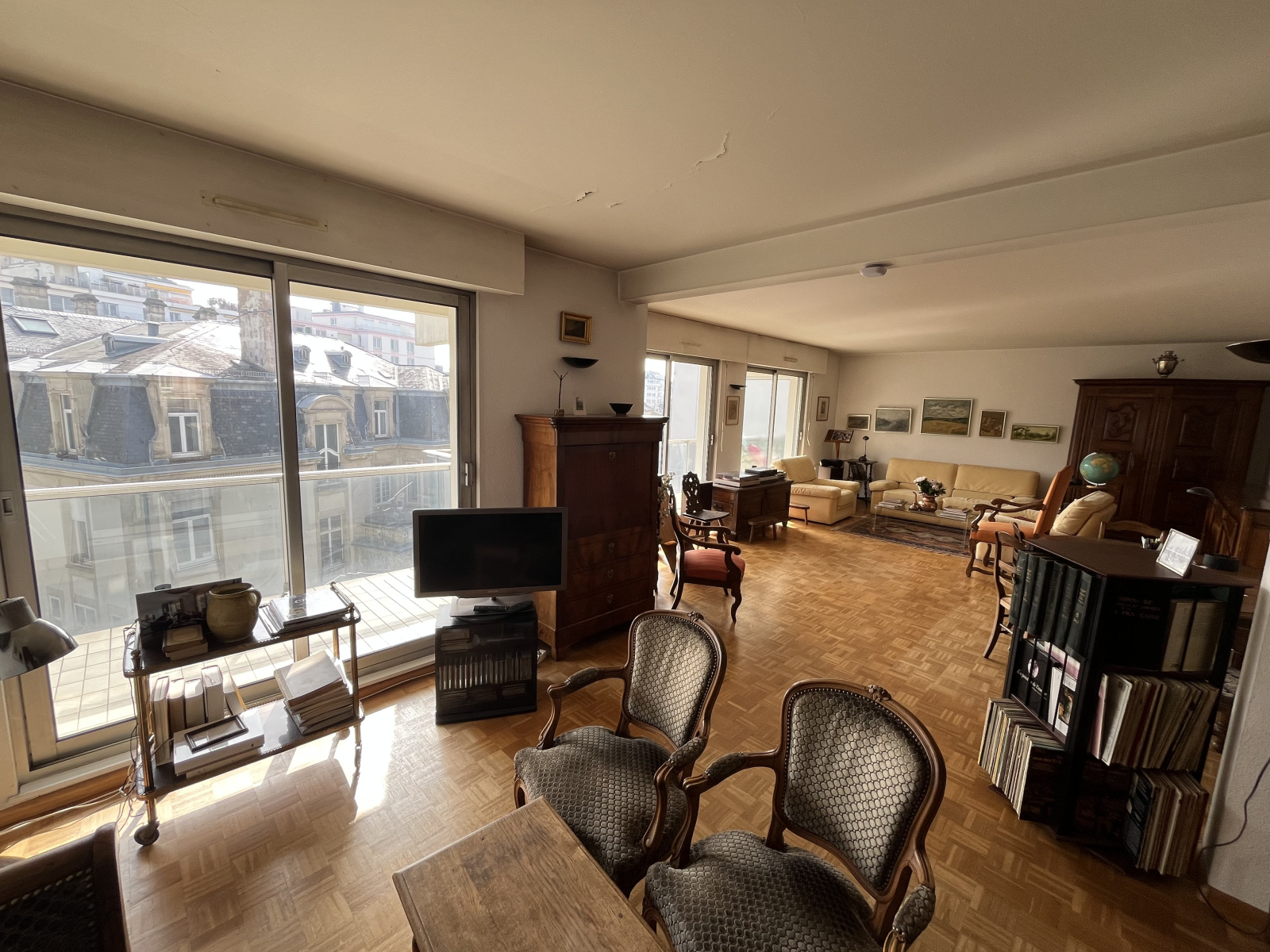 Dans un bel immeuble de standing, proche PARC DES CONTADES, lumineux appartement de 4/5 PIECES 125M² au 4eme étage avec ascenseur composé: d'une entrée avec placard, un salon-séjour lumineux avec grandes baies vitrées donnant sur TERRASSE 23M² EXPOSITION SUD-EST, une cuisine dinatoire équipée et meublée, 3 chambres dont deux avec sanitaires, une salle de bains complète avec douche, baignoire, WC et branchement lave linge, un WC séparé. PARKING + CAVE en sous-sol. Revêtement de sol: beau parquet mosaïque et carrelage dans la cuisine et les pièces d'eau. Chauffage et production ECS: individuel électrique. Libre à la vente.