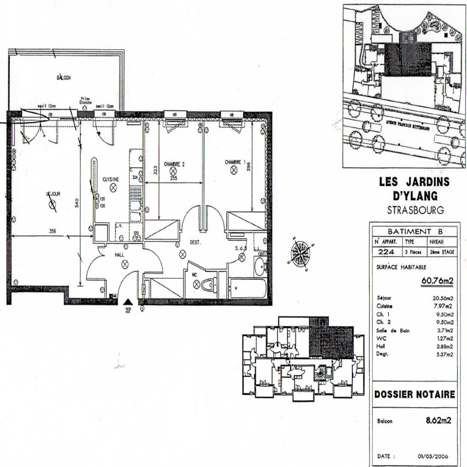 Dans une résidence de 2006 proche d'Eckbolsheim, au 2e étage avec ascenseur, appartement 3 PIECES 60m² + balcon 9m² vue sur PARC exposition SUD-EST comprenant: