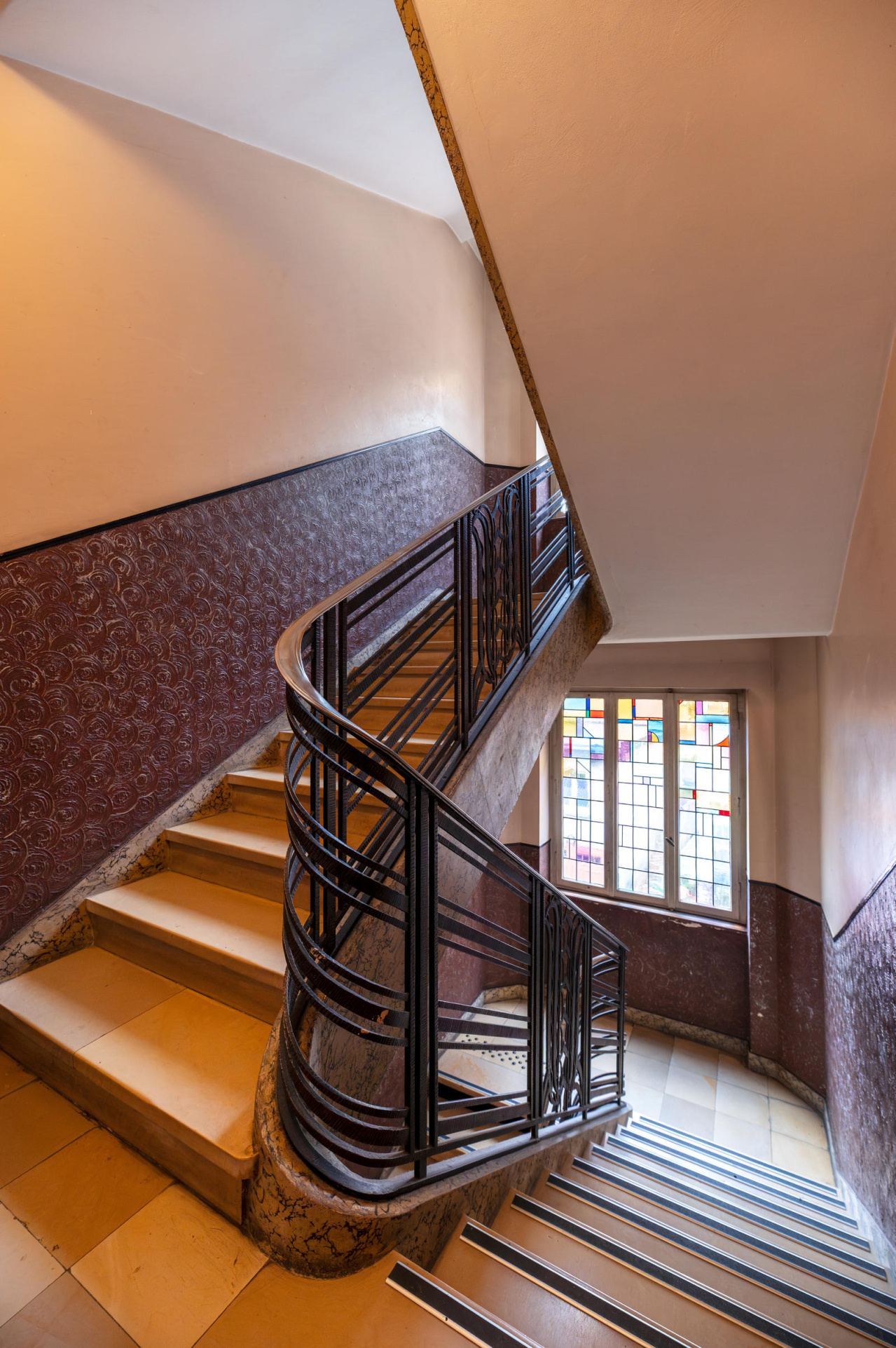 L’immeuble se distingue par une façade remarquable mêlant influences Art déco et architecture bourgeoise, ornée de vitraux d’origine et de balcons travaillés, témoignant d’un véritable souci esthétique et architectural.