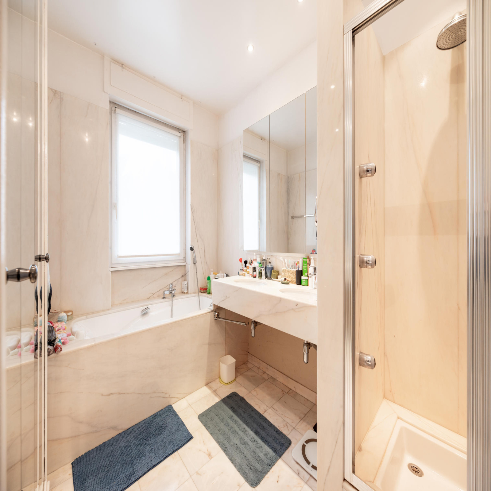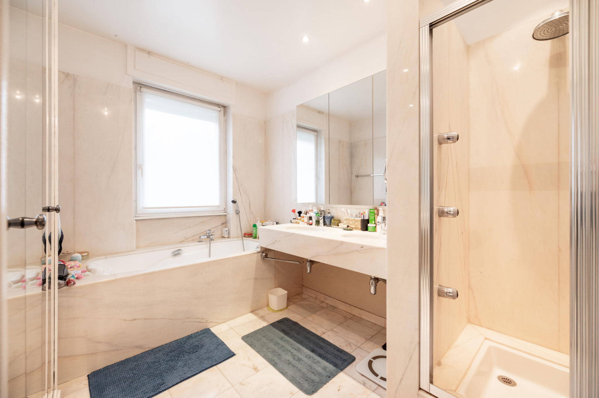 Le rez-de-chaussée offre une belle entrée avec escalier d’apparat, desservant trois pièces de réception en enfilade, prolongées par une véranda ouverte sur le jardin. Une cuisine équipée avec balcon et un cabinet de toilettes complètent ce niveau.