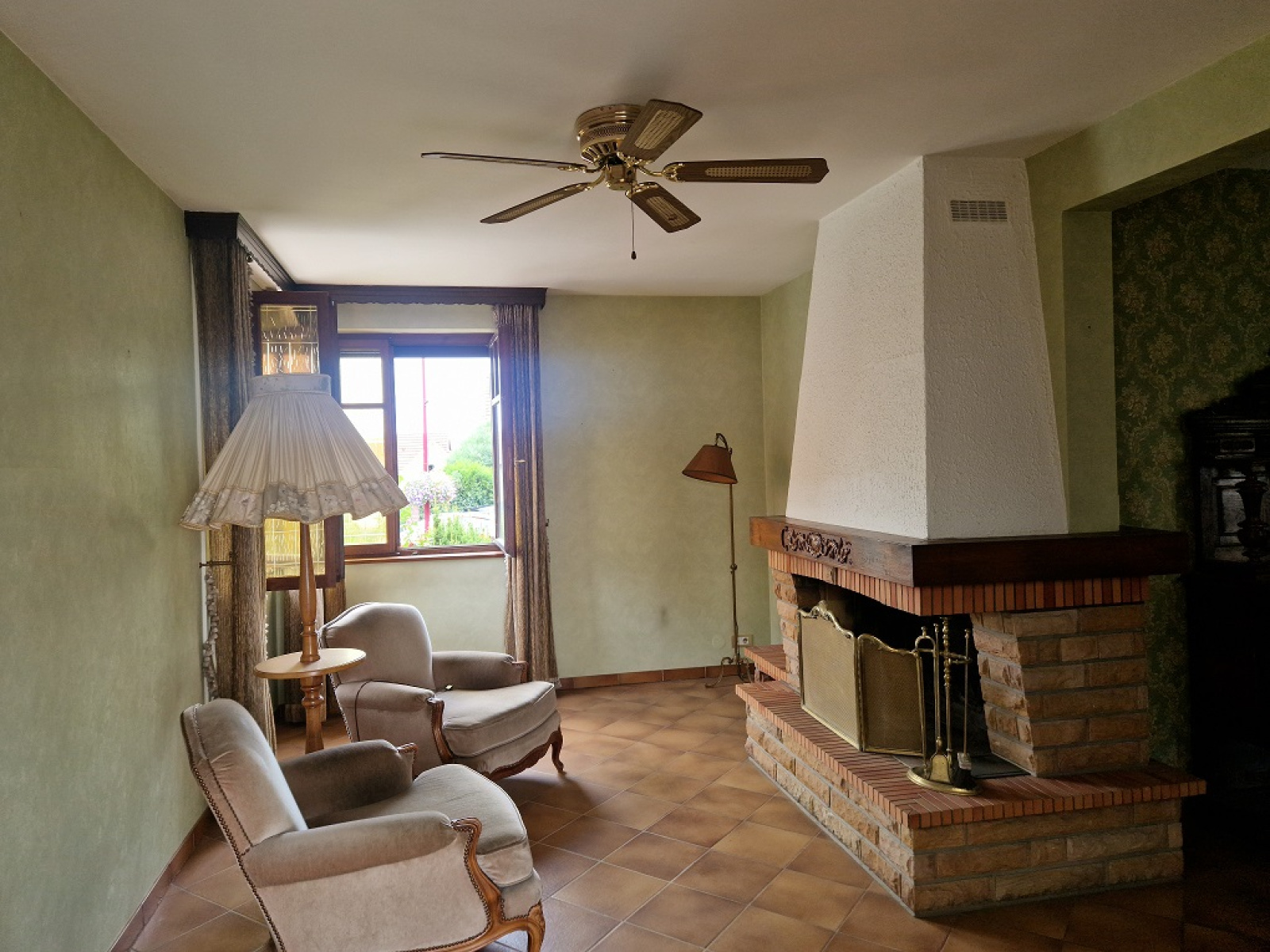 Au rez-de-chaussée : Spacieux salon-séjour 48 m² avec cheminée - Cuisine équipée - un WC